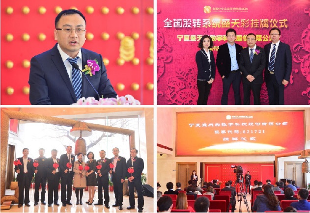 全國中小企業(yè)股份轉(zhuǎn)讓系統(tǒng)(俗稱“新三板”)在京舉行掛牌儀式,寧夏盛天彩數(shù)字科技股份有限公司新三板掛牌交易。